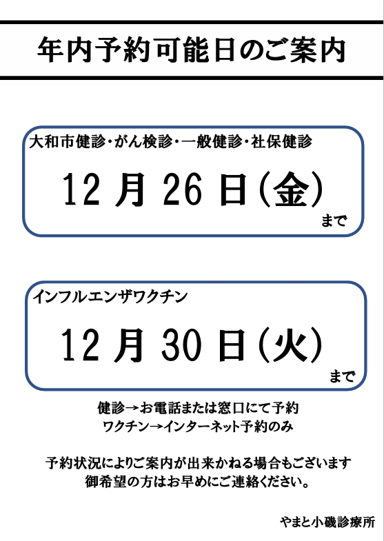 年内インフルエンザ・健診予約について